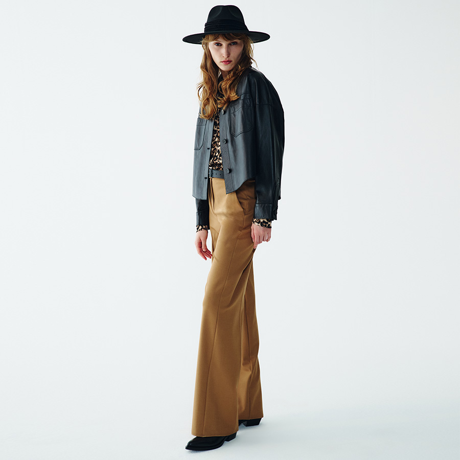 La pelle incontra il denim e lo fa con la stessa energia dei 90’s vibes. Giacche over, jeans a gamba larga e silhouette essenziali che richiamano il minimalismo di quell’epoca.