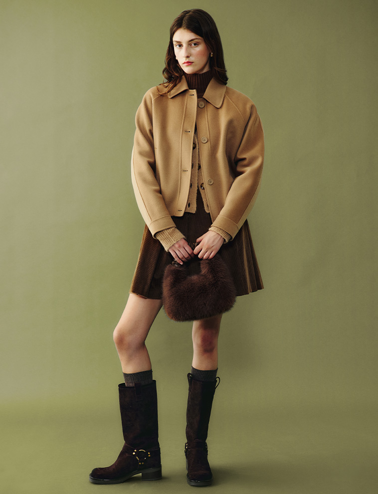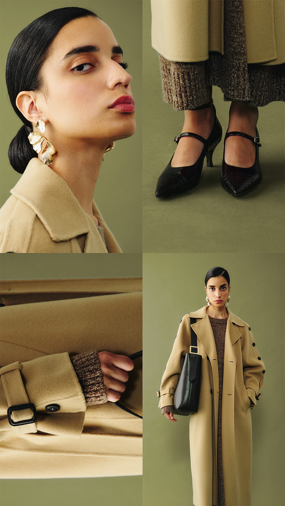 L'eleganza si nasconde nei dettagli e nelle sfumature. Questa stagione, celebriamo la raffinatezza del beige e delle sue infinite tonalità, che si fondono armoniosamente fino a toccare il profondo marrone cioccolato. Questi colori versatili si adattano a ogni capo: dai morbidi maglioni ai nostri cappotti sartoriali, dalle gonne che avvolgono fino ai pantaloni che disegnano la silhouette. Un invito a creare look a strati con una palette di colori sofisticata e senza tempo.