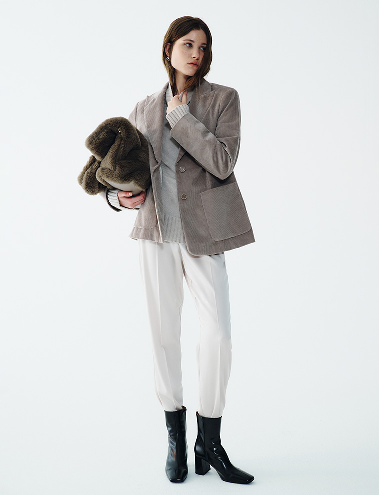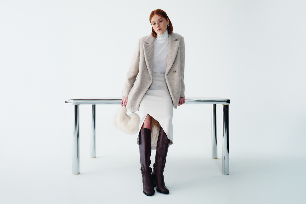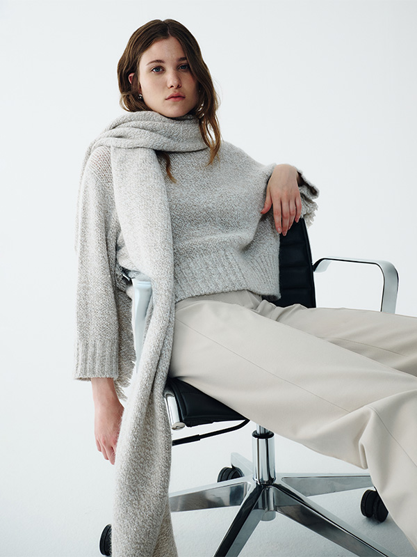 Immergiti in una palette di toni desaturati. Questo inverno, il guardaroba si tinge di grigi lunari, bianchi gessosi e sabbia fredda.