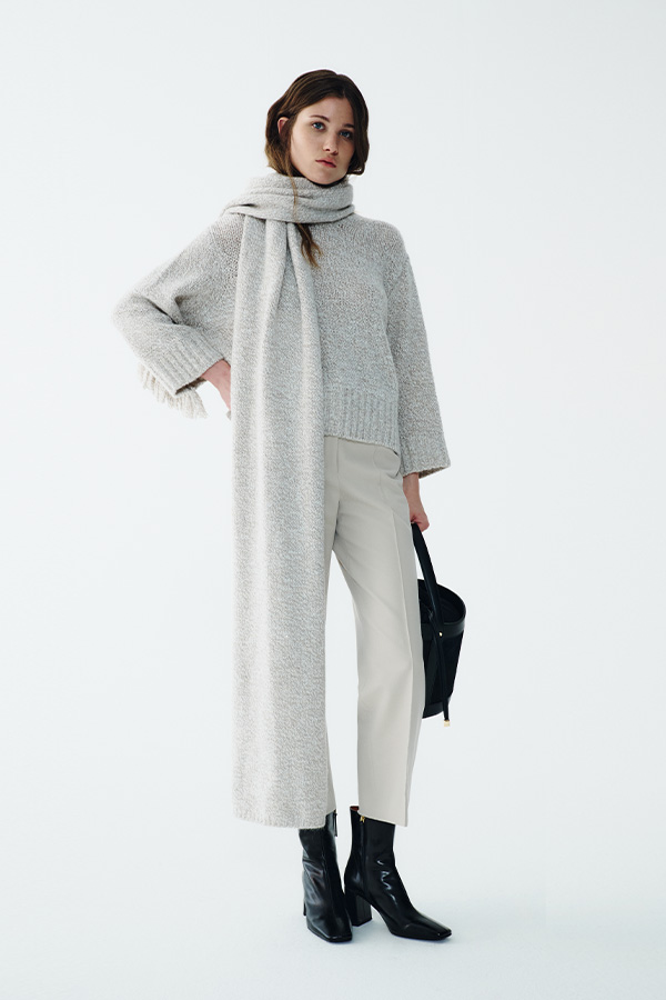 Il segreto del tuo stile risiede nel layering: sovrapporre maxi sciarpe in maglia a dolcevita avvolgenti per creare un look monocromatico di grande impatto visivo.