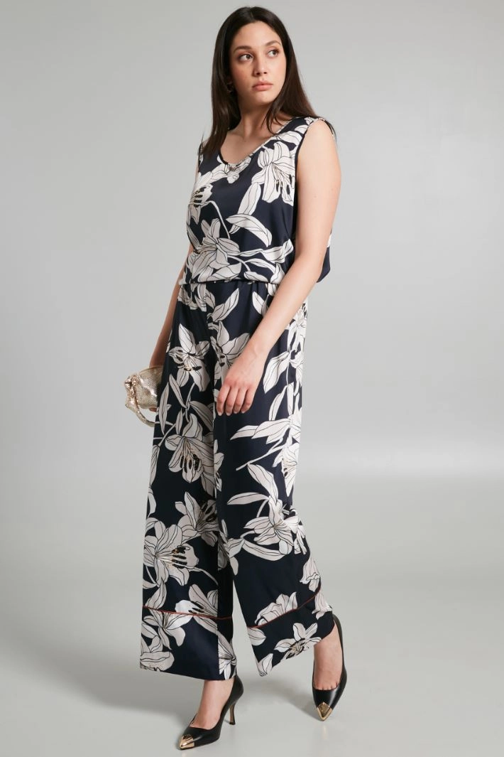 Top dalla linea fluida realizzato in twill stampato, con scollo a U e senza maniche.