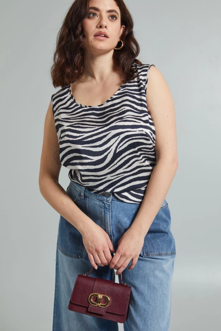 Top dalla linea fluida realizzato in twill stampato, con scollo a U e senza maniche.