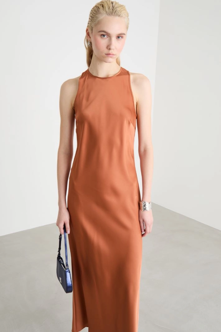 Abito lungo in raso fluido