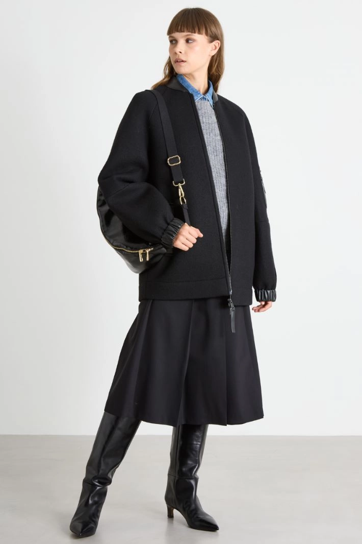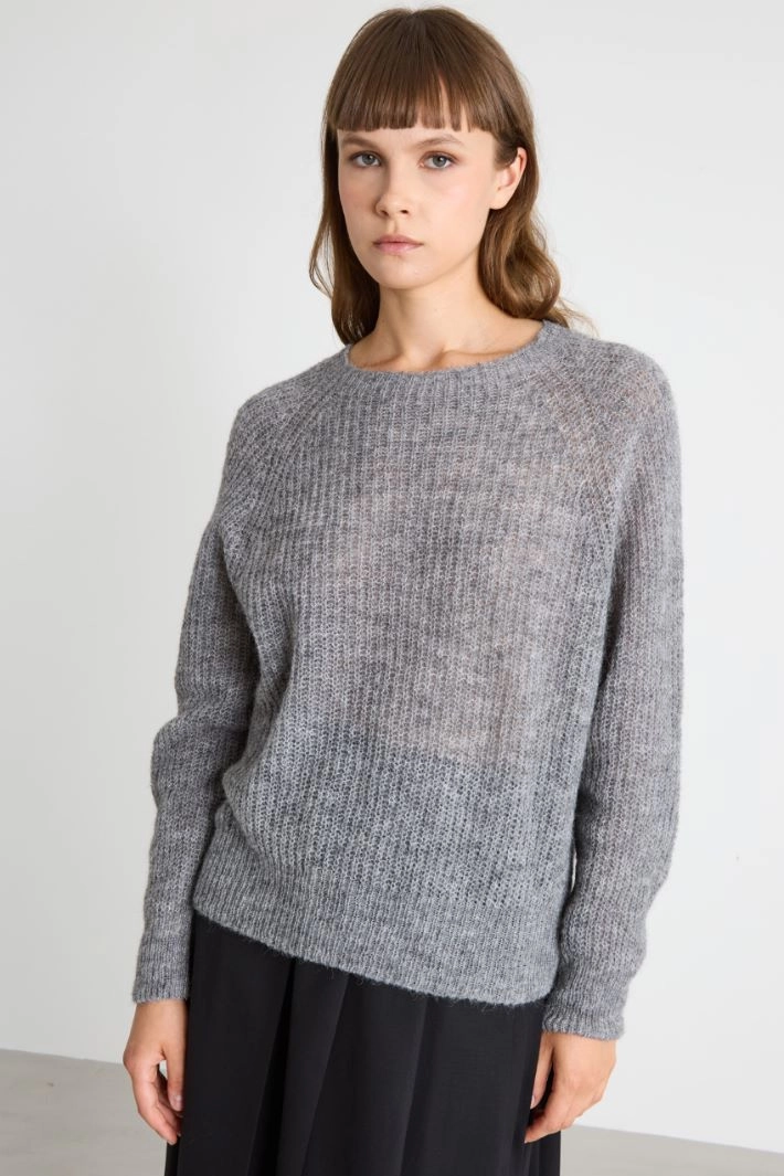Maglia dalla linea morbida realizzata in filato di misto alpaca, con scollo arrotondato e maniche lunghe raglan.