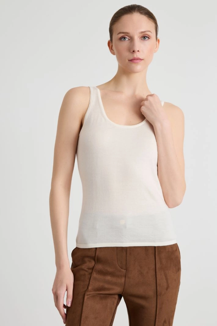 Canotta dalla linea aderente realizzata in maglia di puro cashmere, con scollo a U e spalline sottili.