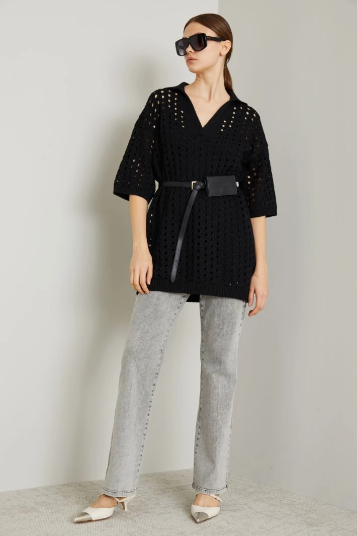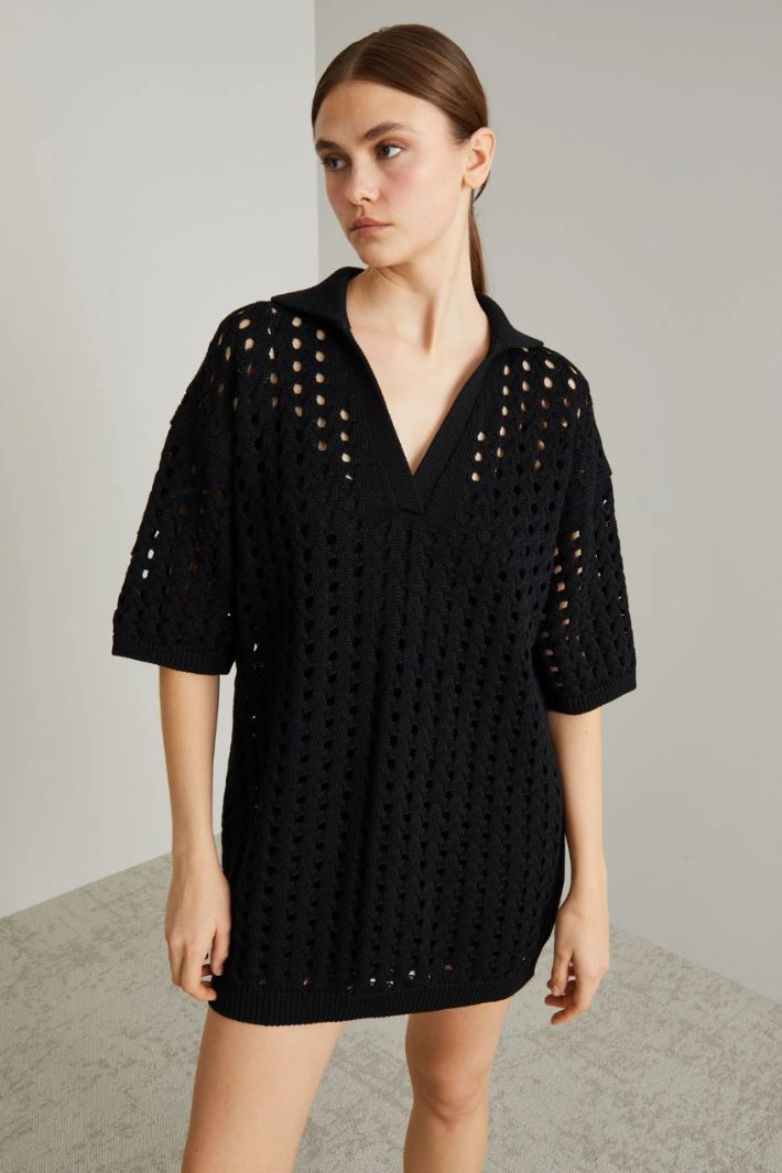 Abito corto in maglia traforata