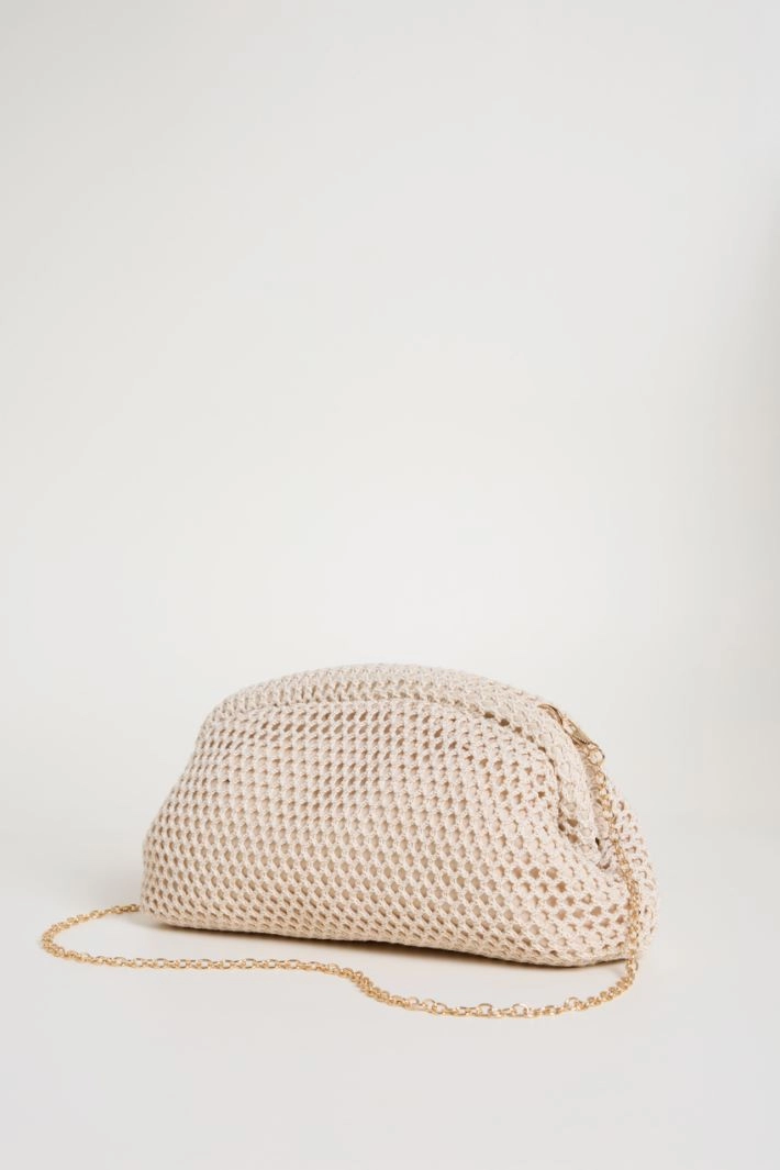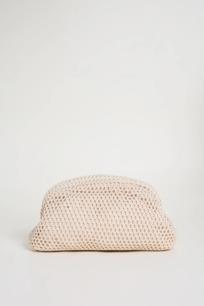 Pochette in tessuto a rete. Modello foderato. Chiusura a scatto.