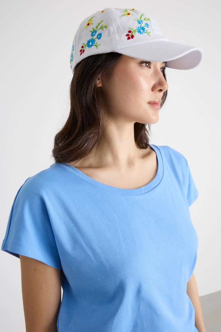 Berretto in jeans ricamato