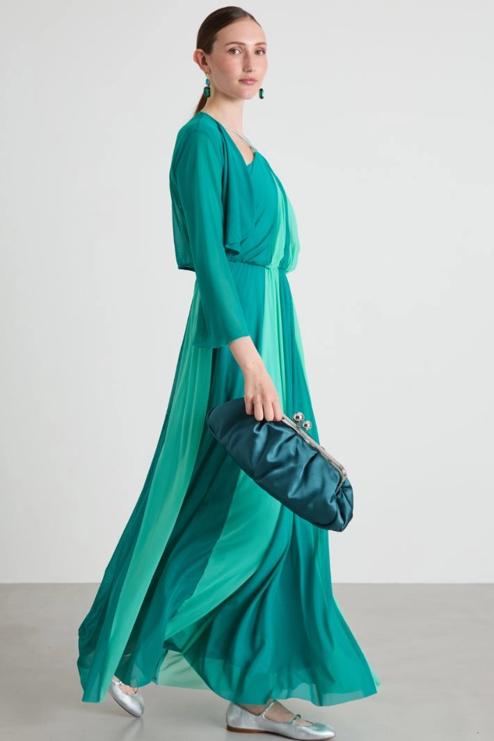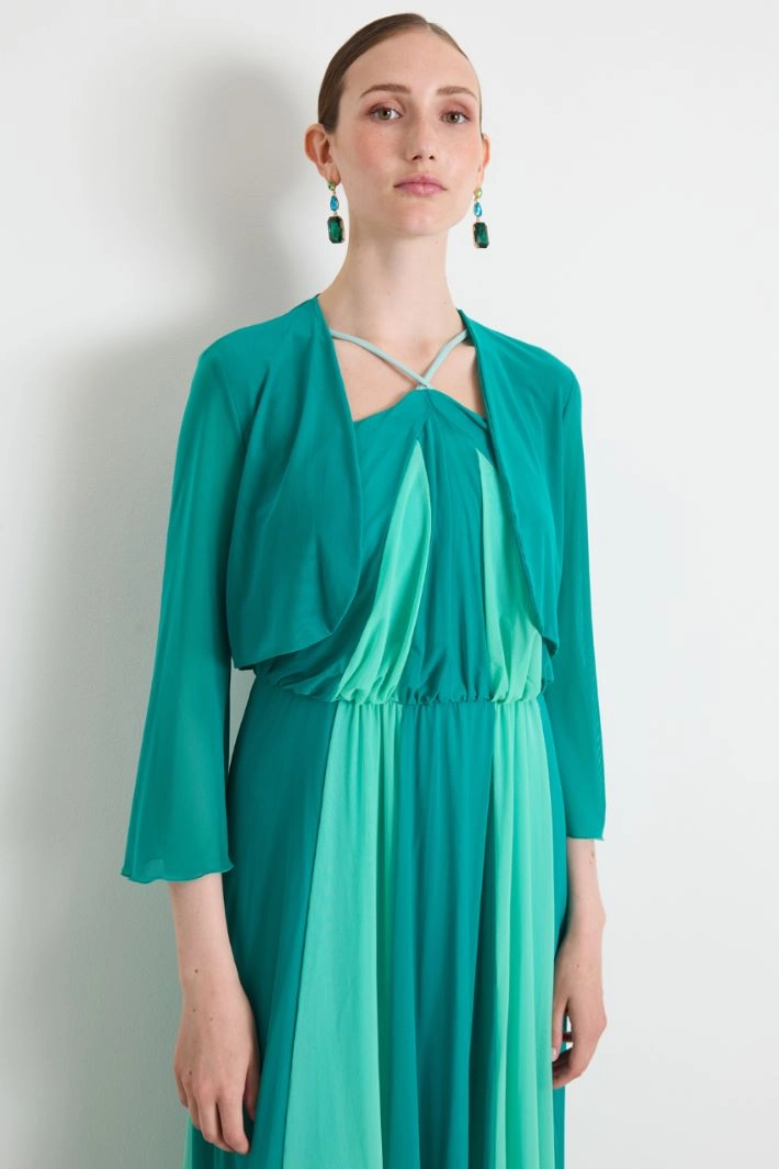 Coprispalle dalla linea ritta realizzato in tulle stretch, con maniche a tre quarti. Senza allacciatura.