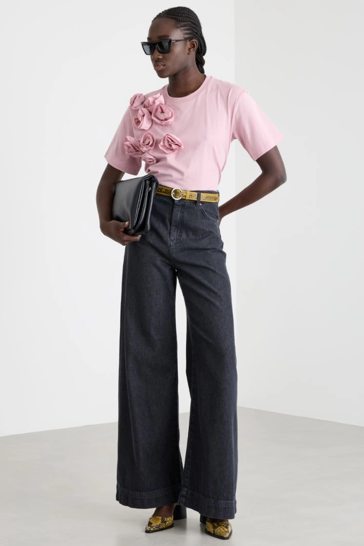 T-shirt con applicazioni floreali