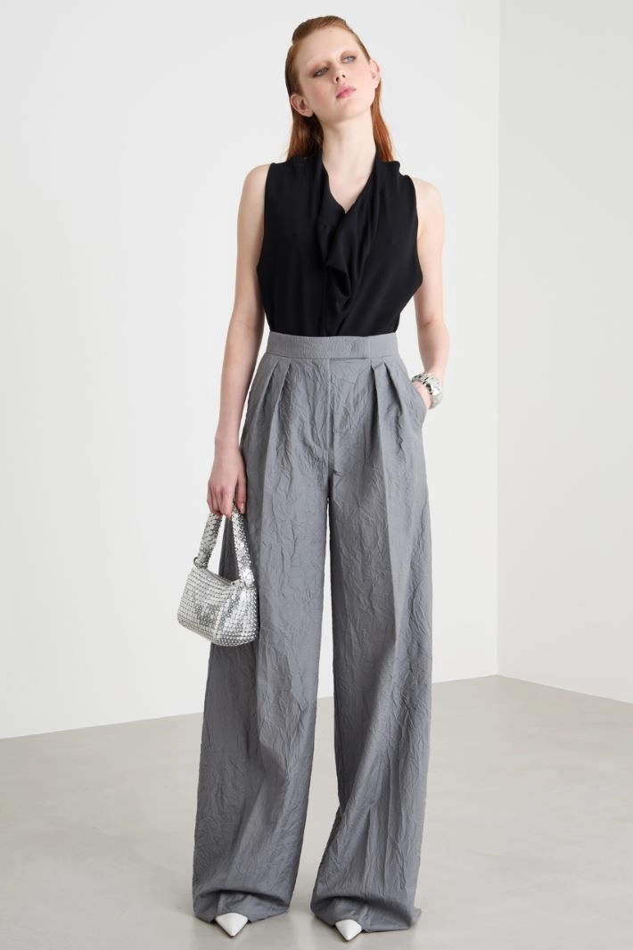 Body dalla linea aderente in maglia di viscosa stretch, con scollo ampio e drappeggiato sul davanti e schiena scoperta con spallini sottili.