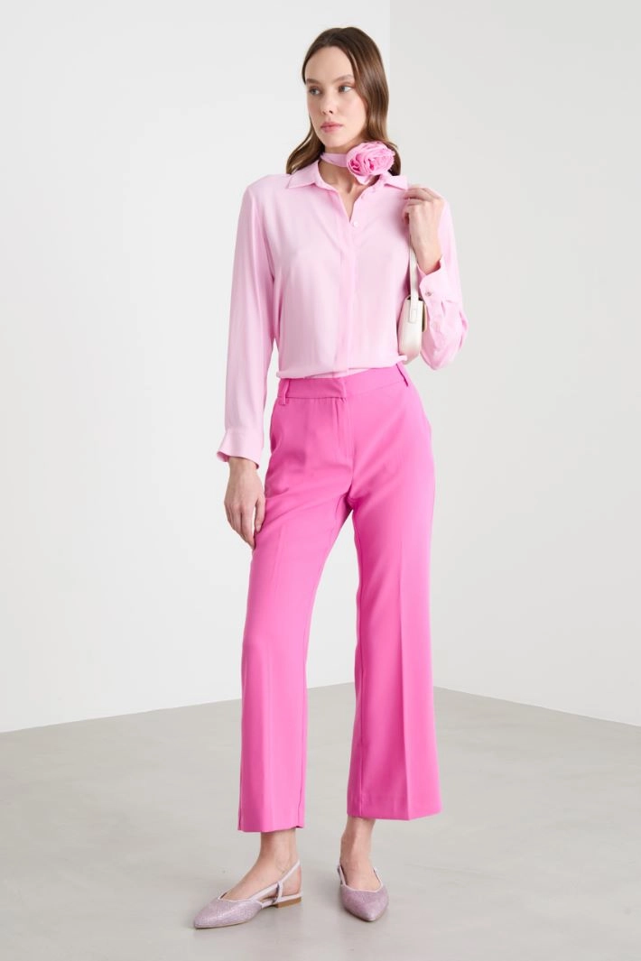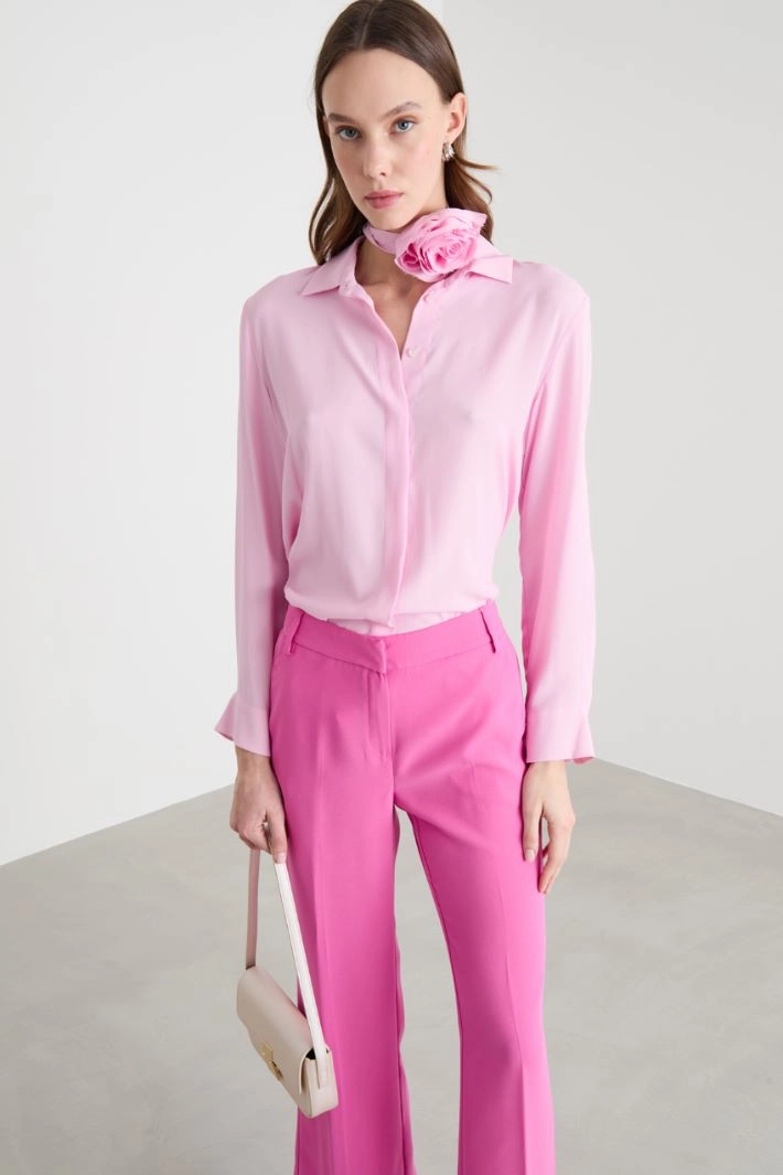 Blusa in crepe con applicazione a fiore