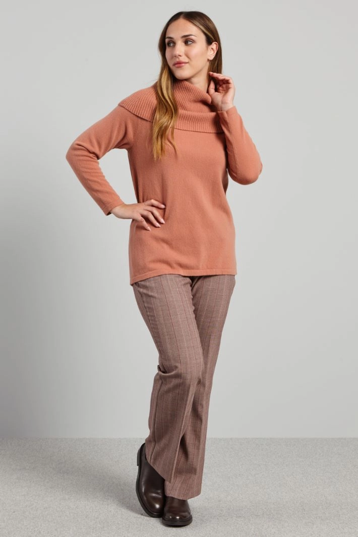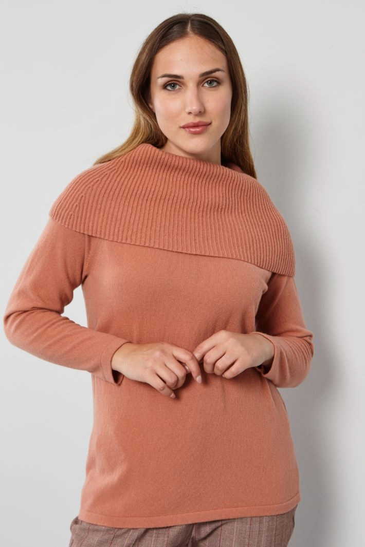 Maglia dalla linea regolare realizzata in filato di lana e cashmere, con maxi collo morbido a coste e maniche lunghe raglan.