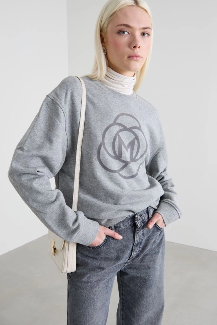 Felpa dalla linea regolare realizzata in jersey di puro cotone, con stampa in velluto sul davanti, scollo a giro e maniche lunghe.