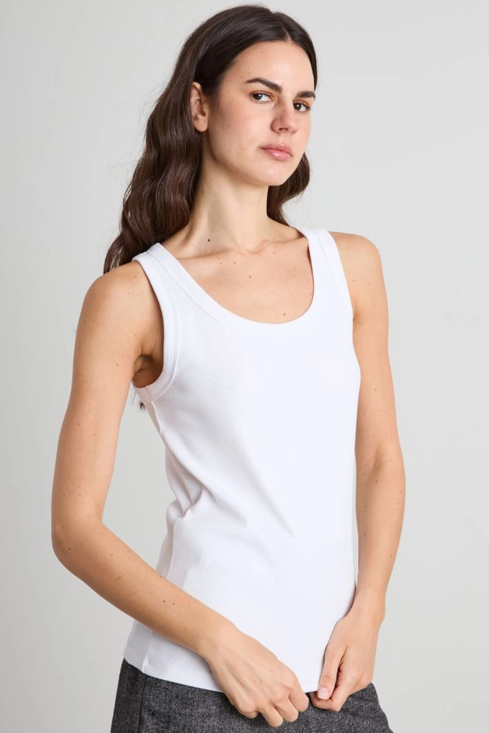 Canotta dalla linea regolare realizzata in jersey di cotone stretch a costine, con scollo a U e spalline larghe.