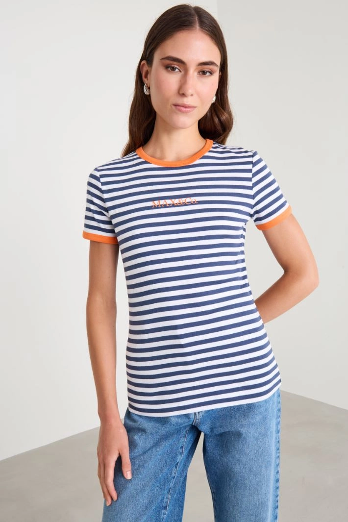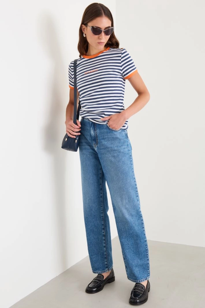 T-shirt dalla linea dritta realizzata in jersey di puro cotone tinto filo, con profili a contrasto, scollo a giro e maniche corte.