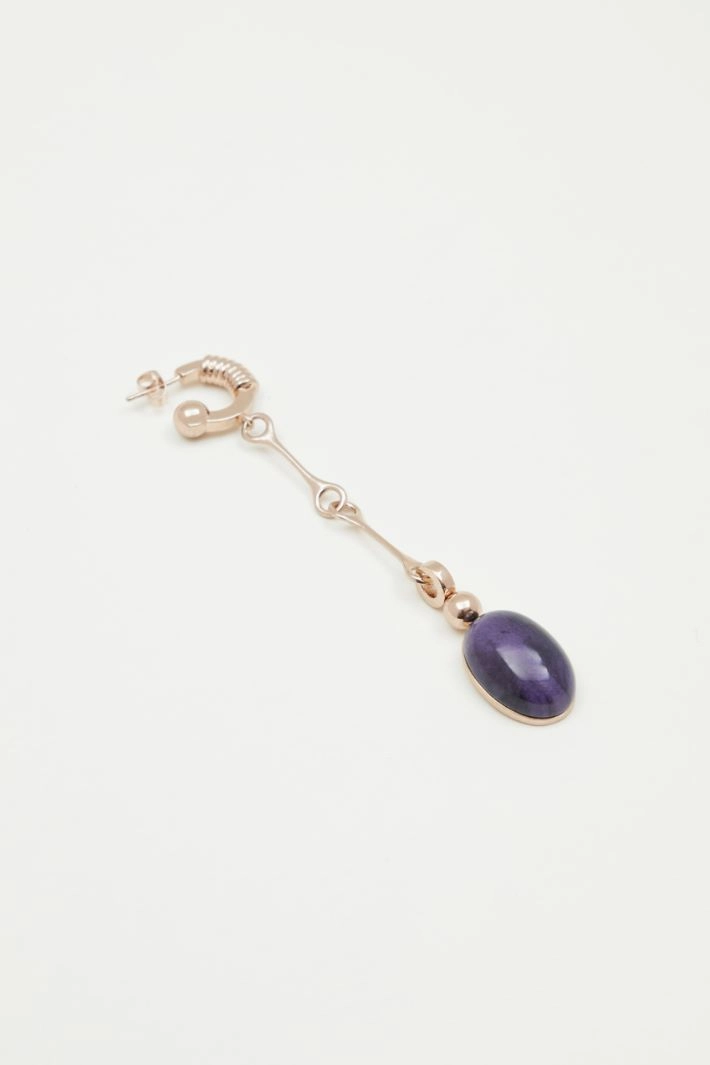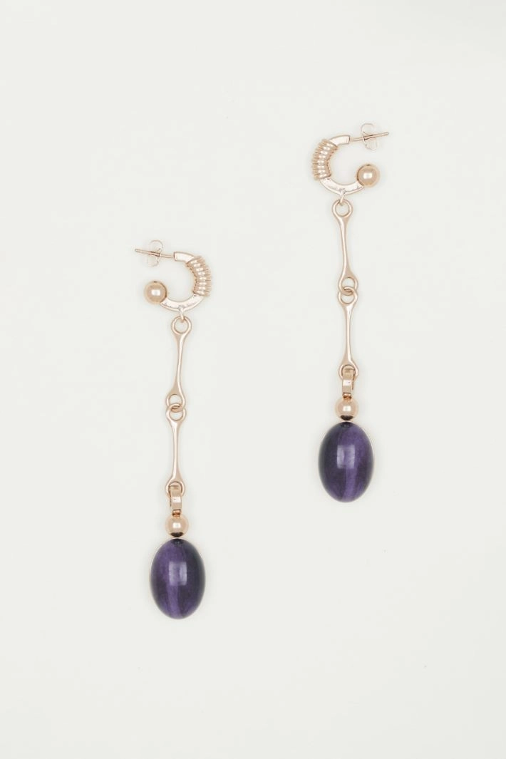 Orecchini a cerchio con elementi a catena in metallo e pendente in resina. Chiusura a farfalla.