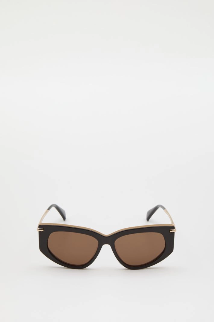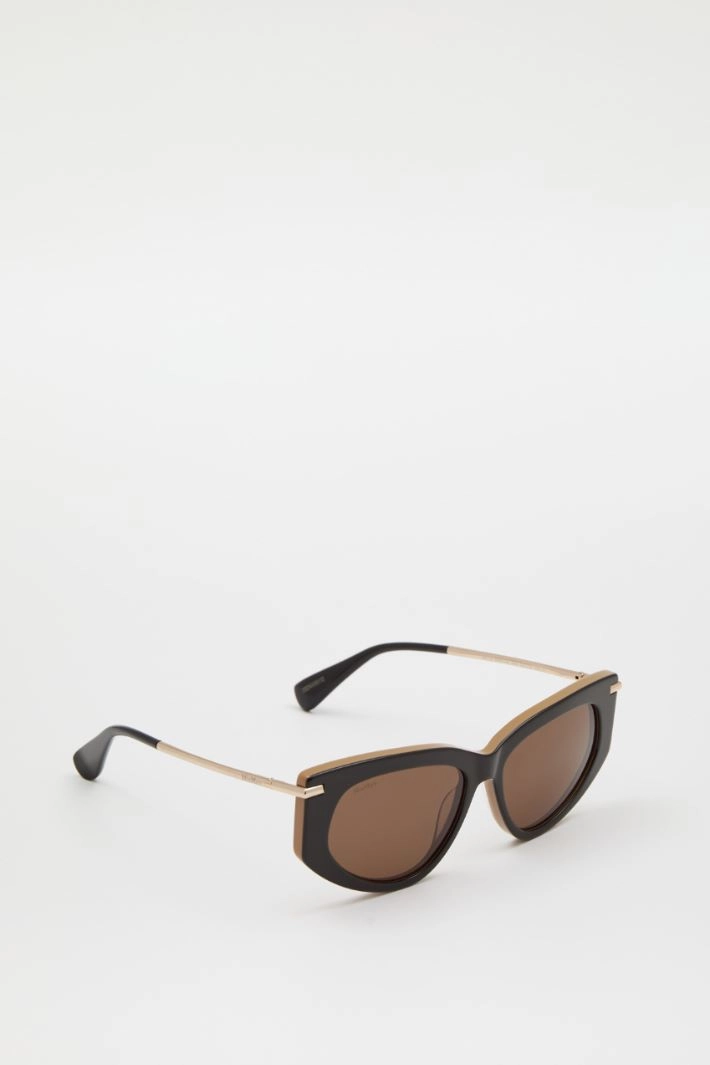 Occhiali da sole rettangolari realizzati in resina con aste sottili in metallo.