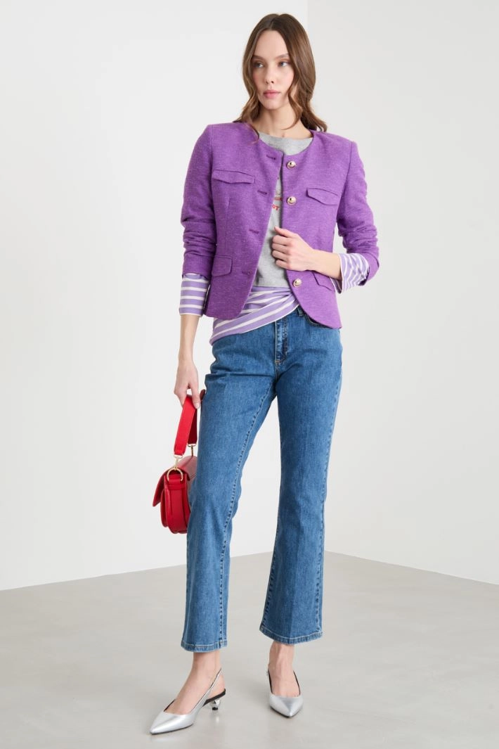 Jeans dalla linea aderente con passanti in vita, tasche arrotondate sul davanti, tasche applicate sul retro. Chiusura con bottone e zip nascosta.