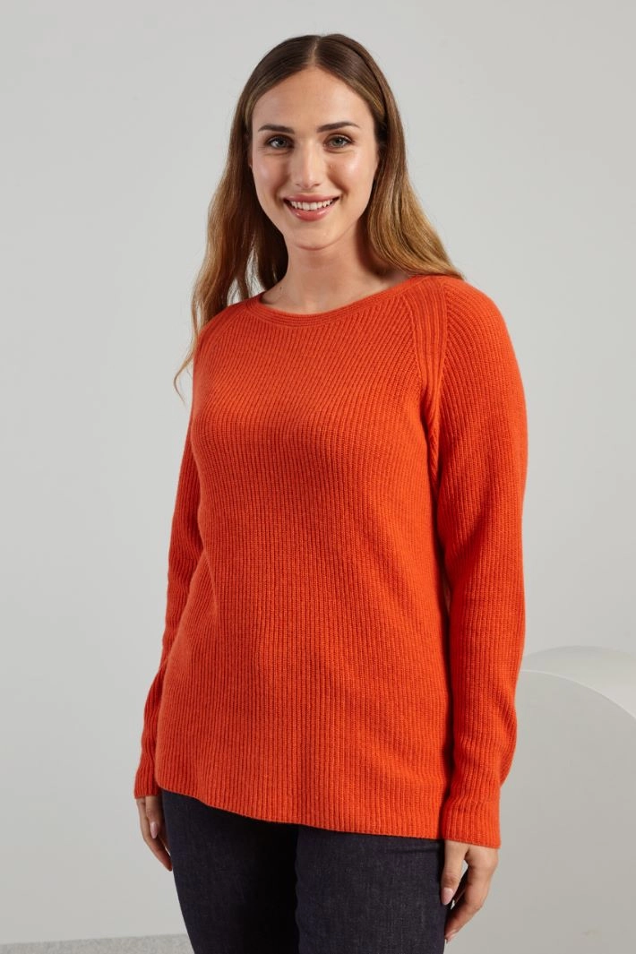Maglia dalla linea dritta realizzata in filato di misto viscosa, lana e cashmere, con lavorazione a coste, scollo rotondo e maniche lunghe raglan.