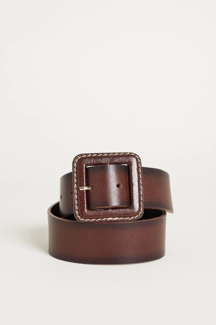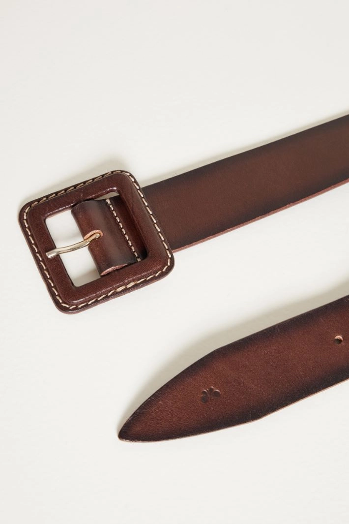Cintura in pelle sfumata con puntale a freccia e fibbia ricoperta con impunture a contrasto.