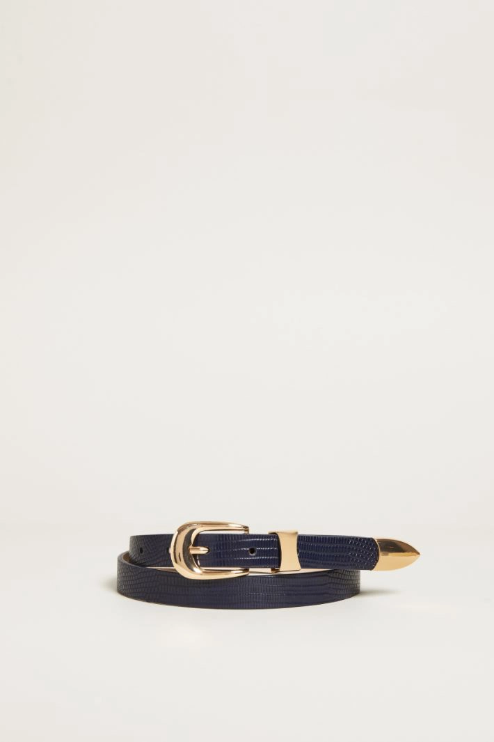Cintura sottile realizzata in similpelle stampa cocco, con puntale in metallo.