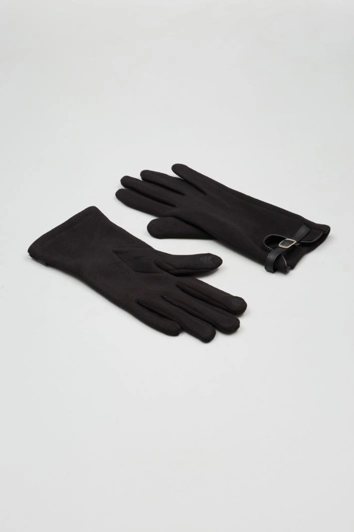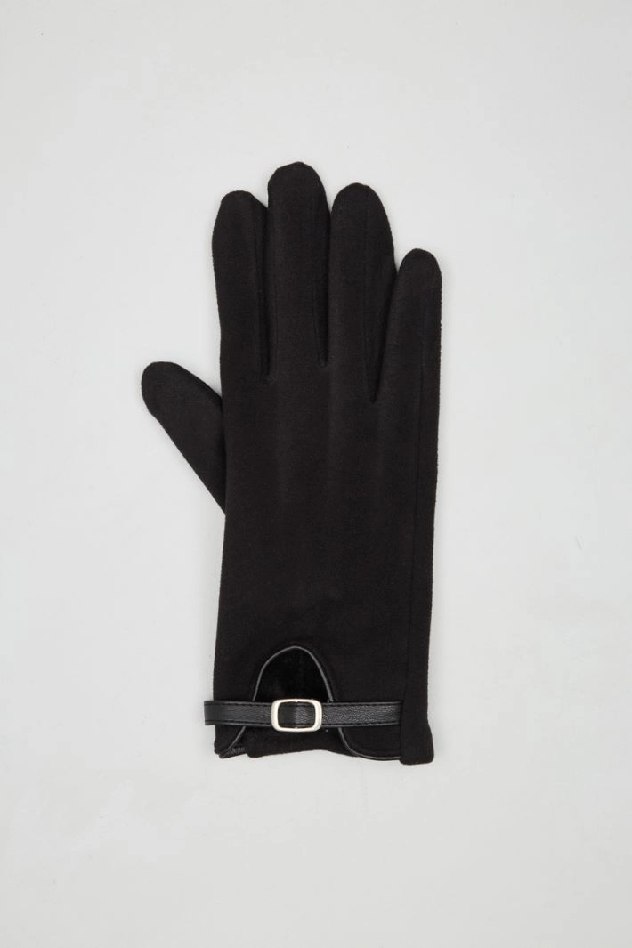 Guanti realizzati in jersey stretch effetto suede, con dettaglio di cinturino decorativo al polso e interno felpato.