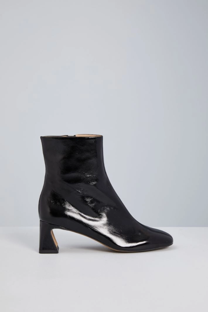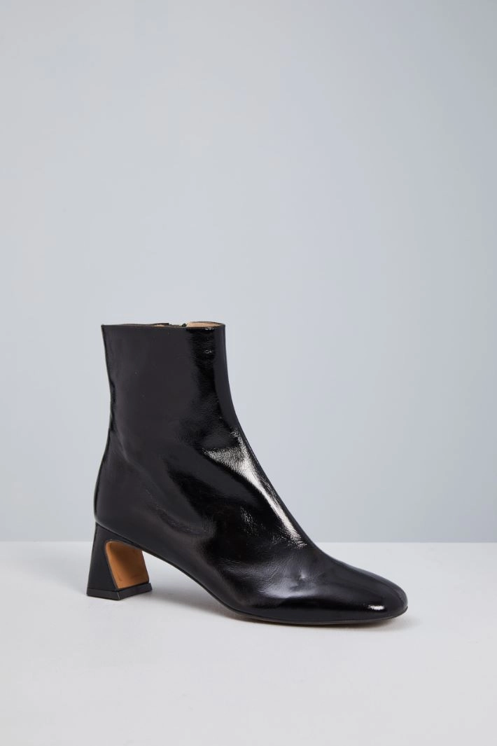 Tronchetti realizzati in vera pelle, con punta e tacco squadrati. Chiusura tramite zip sul lato interno. Suola in gomma.