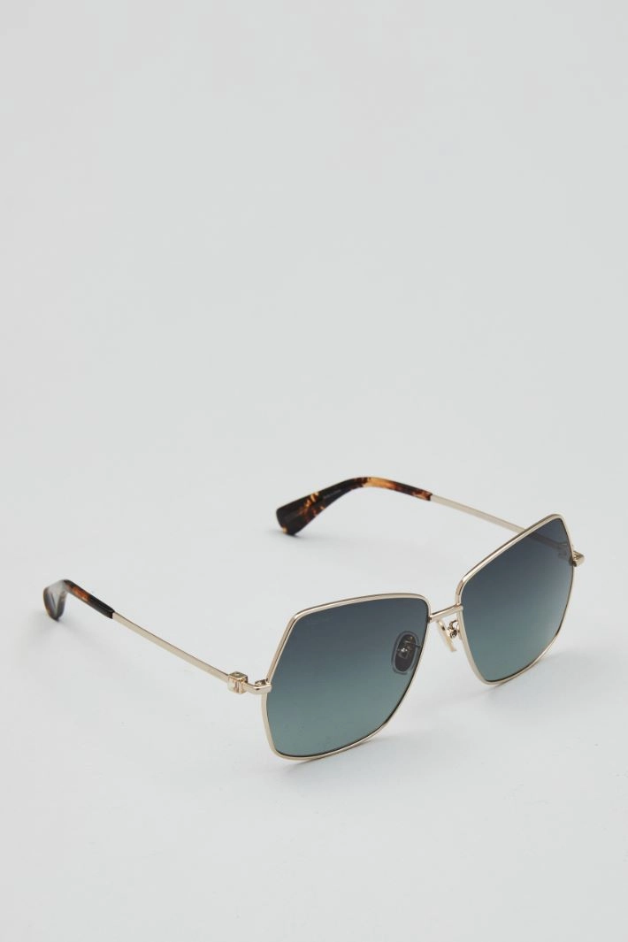 Occhiali da sole realizzati in metallo. Montatura leggera squadrata e lenti sfumate.