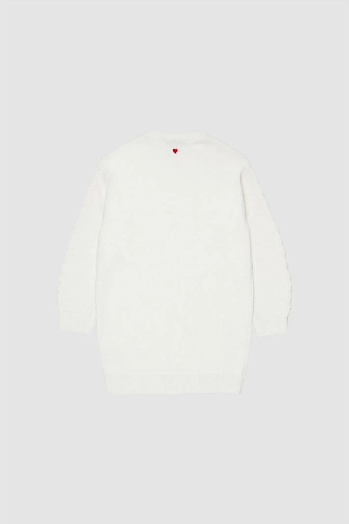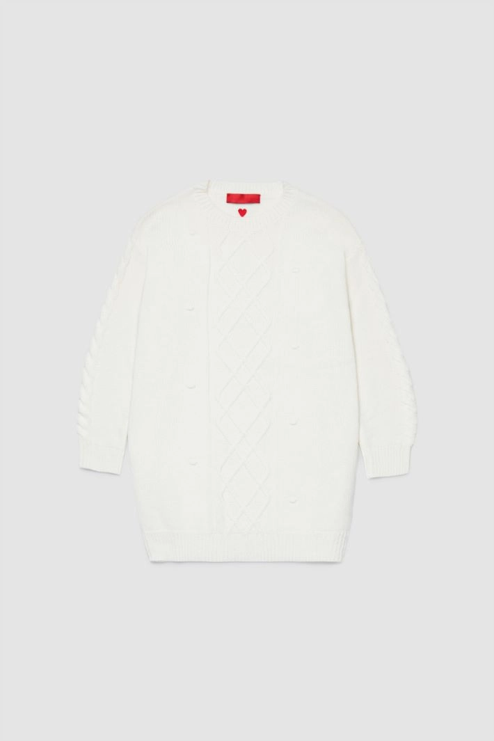 Abito dalla linea a uovo in filato misto lana con scollo rotondo, definito da un mix di lavorazioni e maniche lunghe con dettagli a coste.