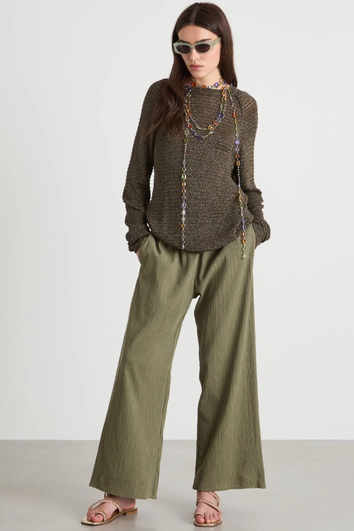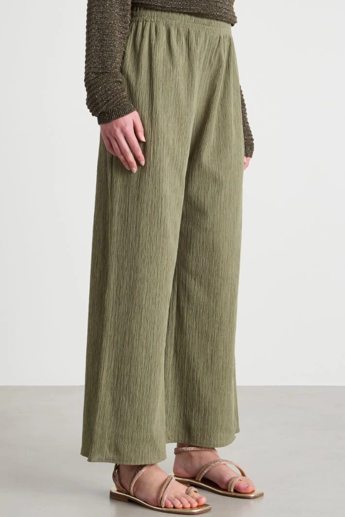 Pantalone dritto in jersey plissè