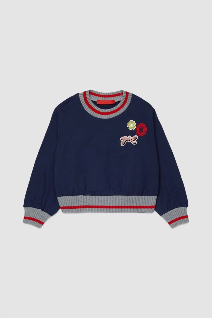 Felpa girocollo dalla linea dritta in puro cotone con maniche lunghe, patches applicate sul davanti, dettagli in maglieria a coste su girocollo, polsini e fondo.