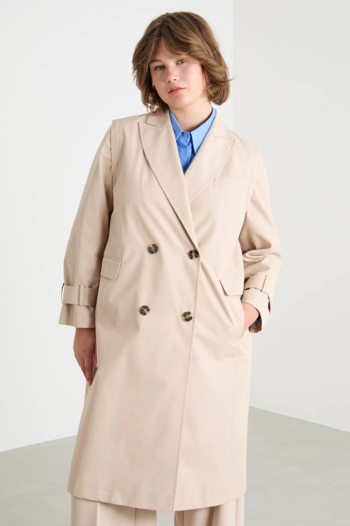 Impermeabile in twill antigoccia con maniche rimovibili