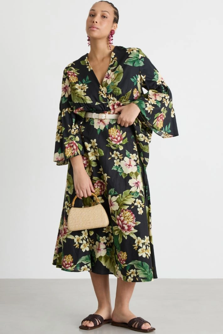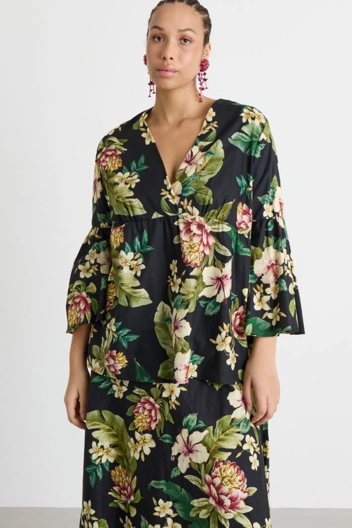 Casacca con balza in raso stampato
