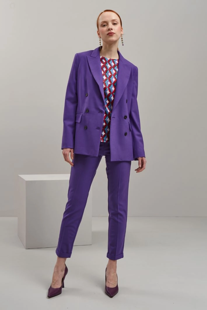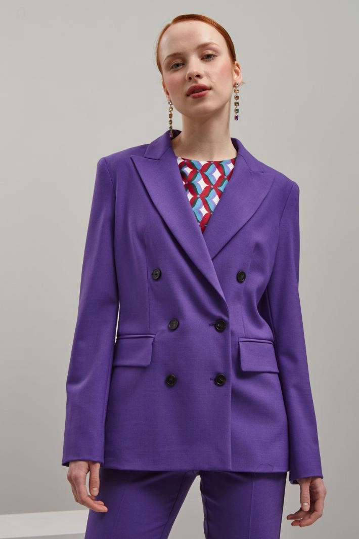 Blazer dalla linea leggermente sfiancata realizzato in gabardina di misto lana stretch, con collo a rever, maniche lunghe con bottoni, tasche a doppio filetto con patta, spacco nel retro. Allacciatura doppiopetto tramite bottoni. Foderato.
