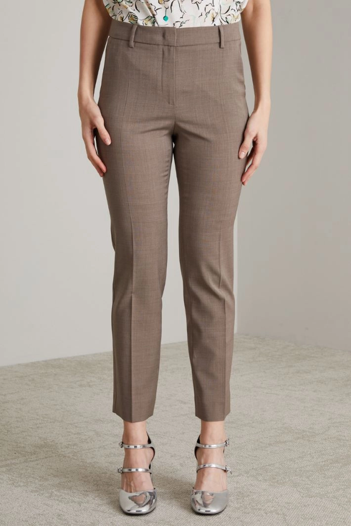 Pantaloni a sigaretta realizzati in tela di pura lana, con passanti in vita, tasche laterali alla francese e a doppio filetto con bottone nel retro, allacciatura nascosta tramite zip, bottone e gancio.