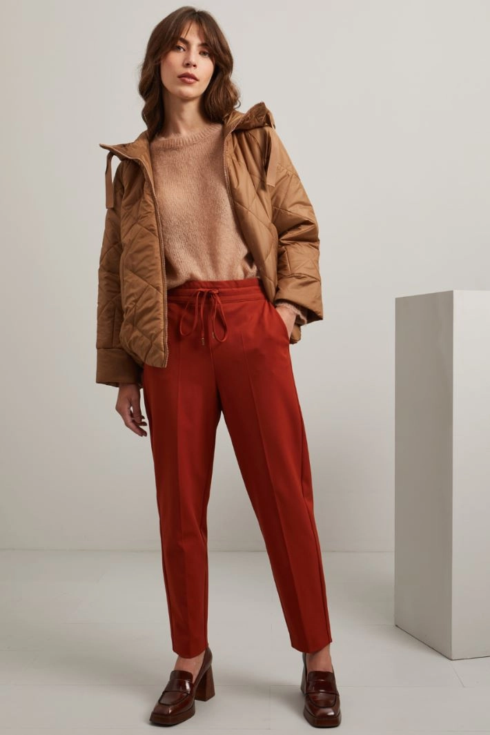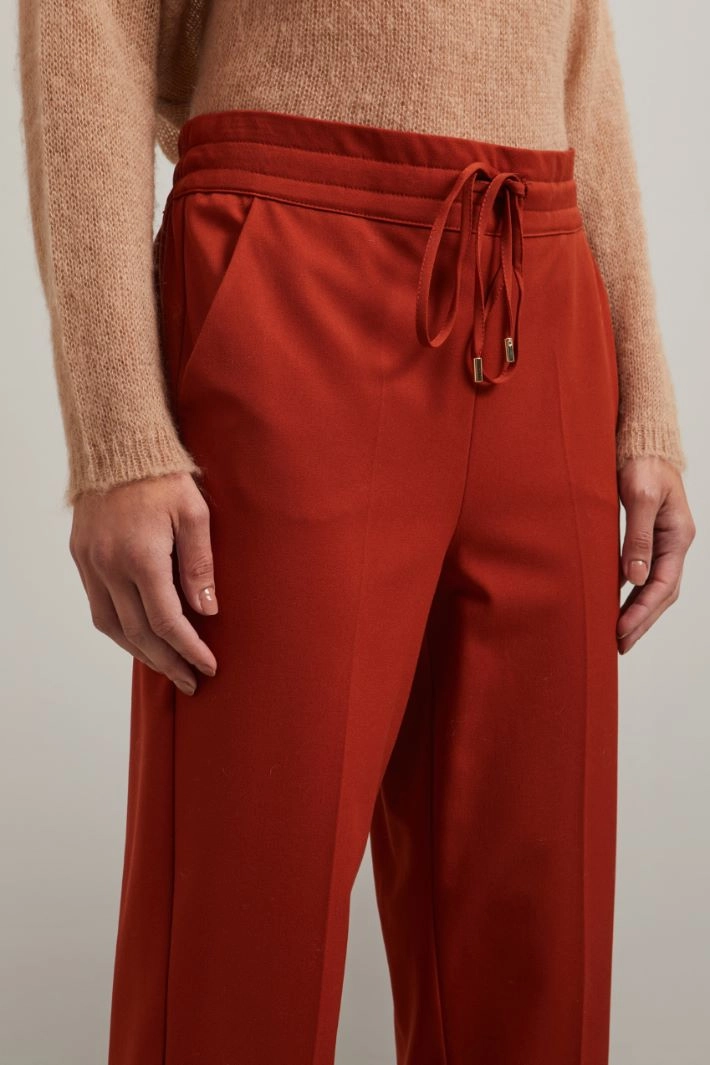 Pantaloni jogger realizzati in tessuto di misto viscosa stretch, con inserto elastico in vita e coulisse da annodare, tasche alla francese.
