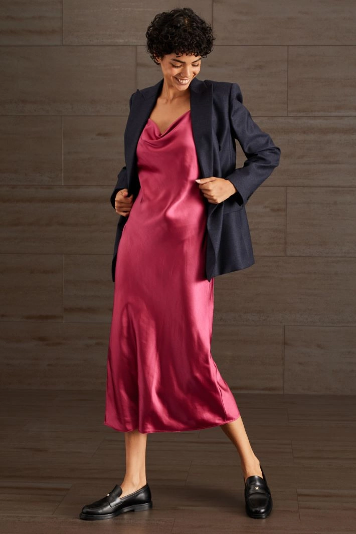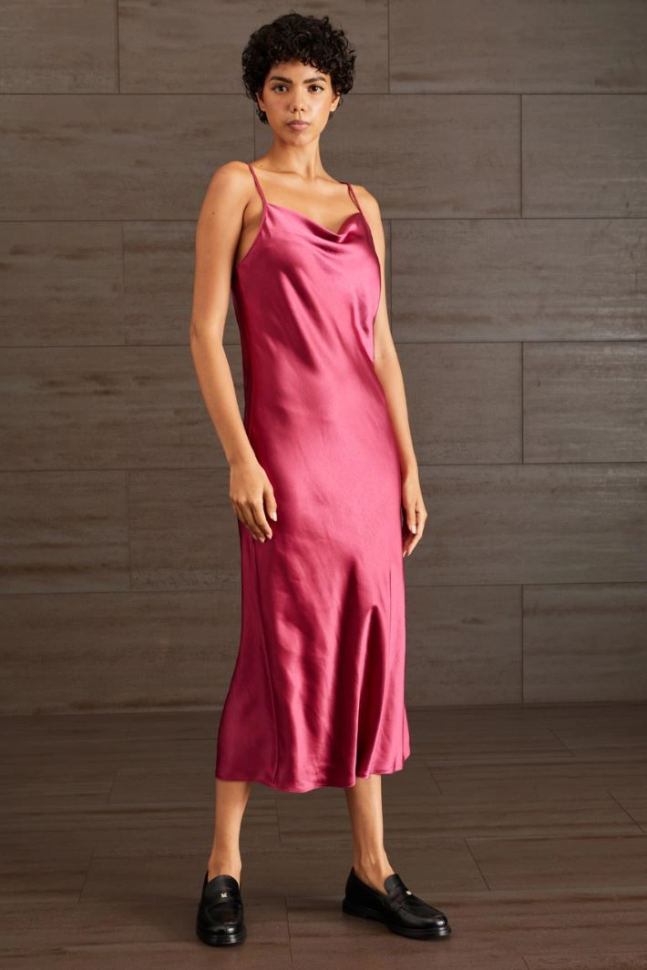 Slip dress dalla linea dritta realizzato in raso, con spalline sottili e scollo a U drappeggiato.