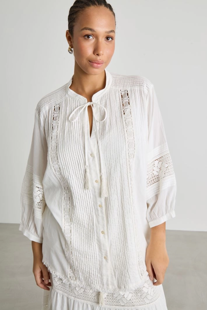 Casacca in mussola con inserti in pizzo