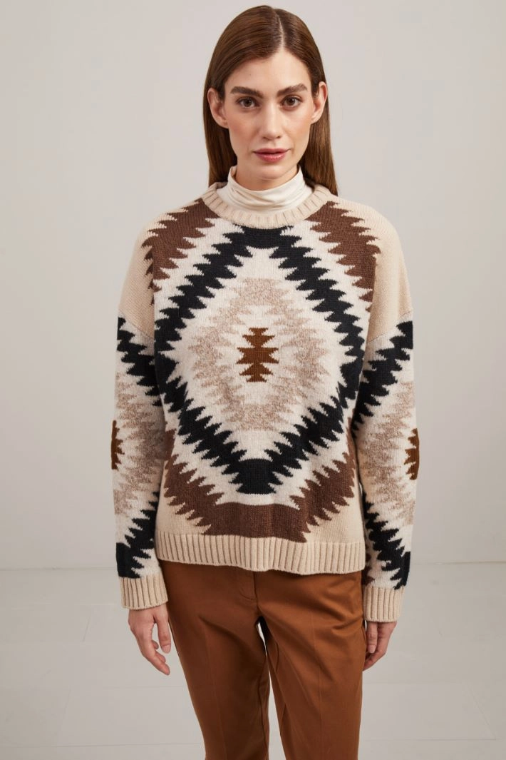 Maglia dalla linea dritta realizzata in filato di misto lana e mohair, con motivo a intarsio, scollo a giro, maniche lunghe e profili rifiniti a coste.
