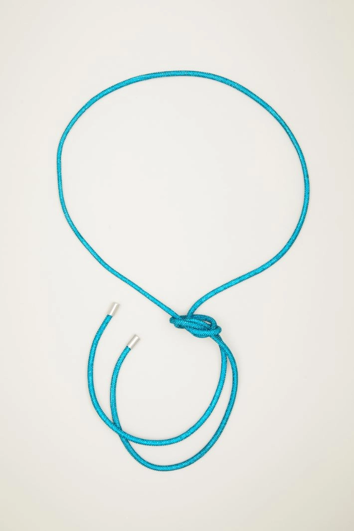 Cintura tubolare realizzata in resina e vetro, con strass applicati all over e terminali in metallo.