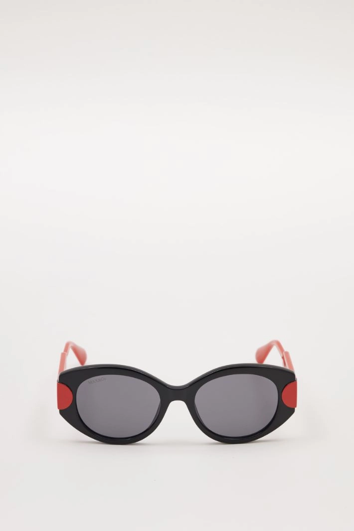 Occhiali da sole realizzati in resina con aste a contrasto.
