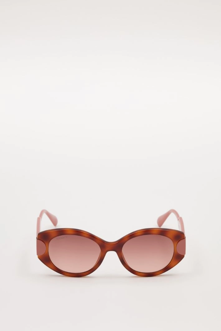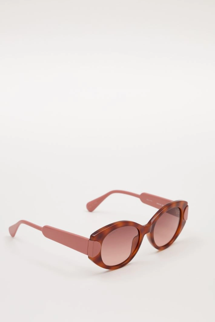 Occhiali da sole realizzati in resina con aste a contrasto.