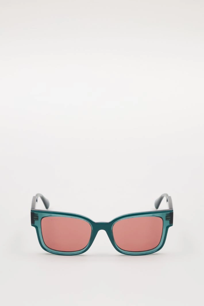 Occhiali da sole realizzati in resina con montatura semitrasparente.