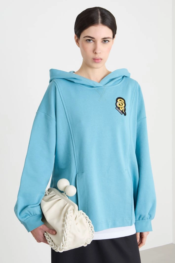 Felpa oversize con patch e cappuccio