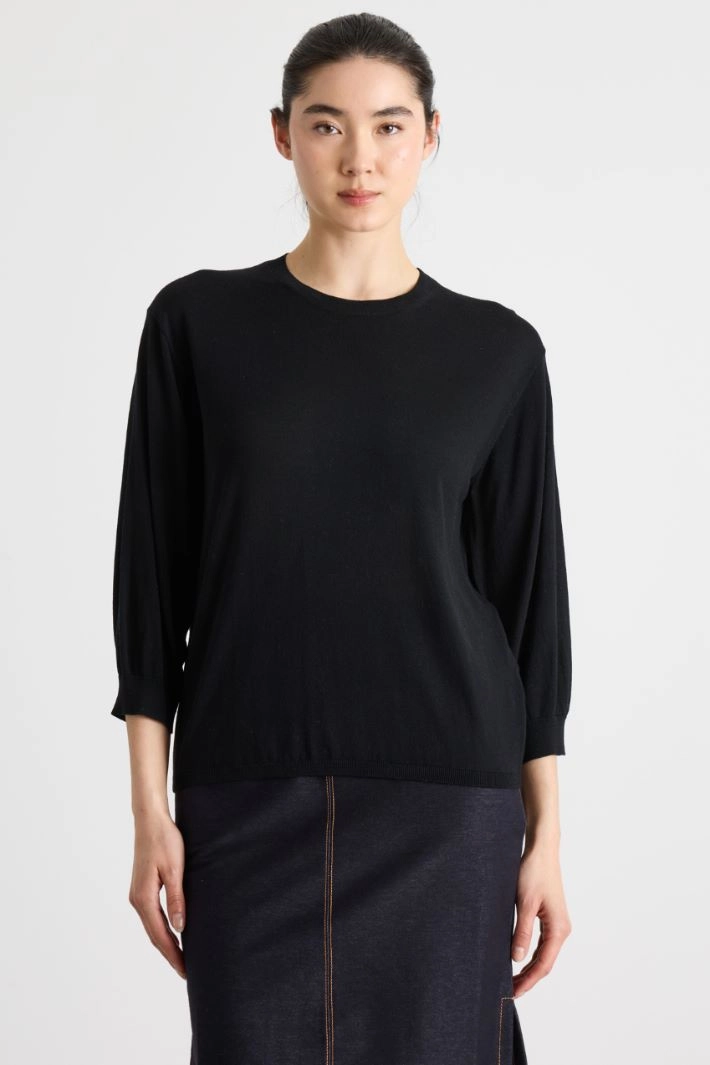Maglia girocollo con maniche a spalla scesa